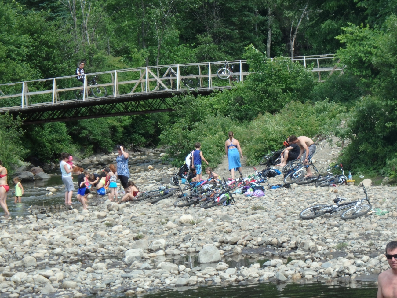 East Burke, Vermont is a popular recreation hotspot for mountain bikers, who use the Passumpsic River to cool off.
