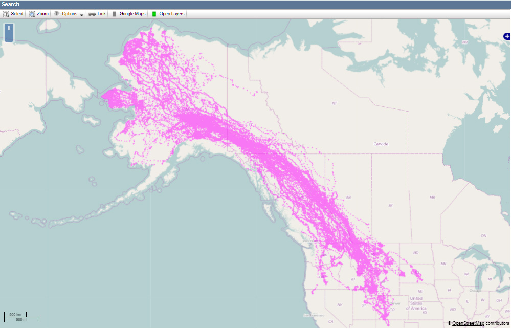 Movements of a tagged Golden Eagle in Alaska to areas in the lower continental United States.