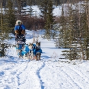 A musher racing in the Kobuk 440 approaches along the trail at Selawik National Wildlife Refuge in Alaska.