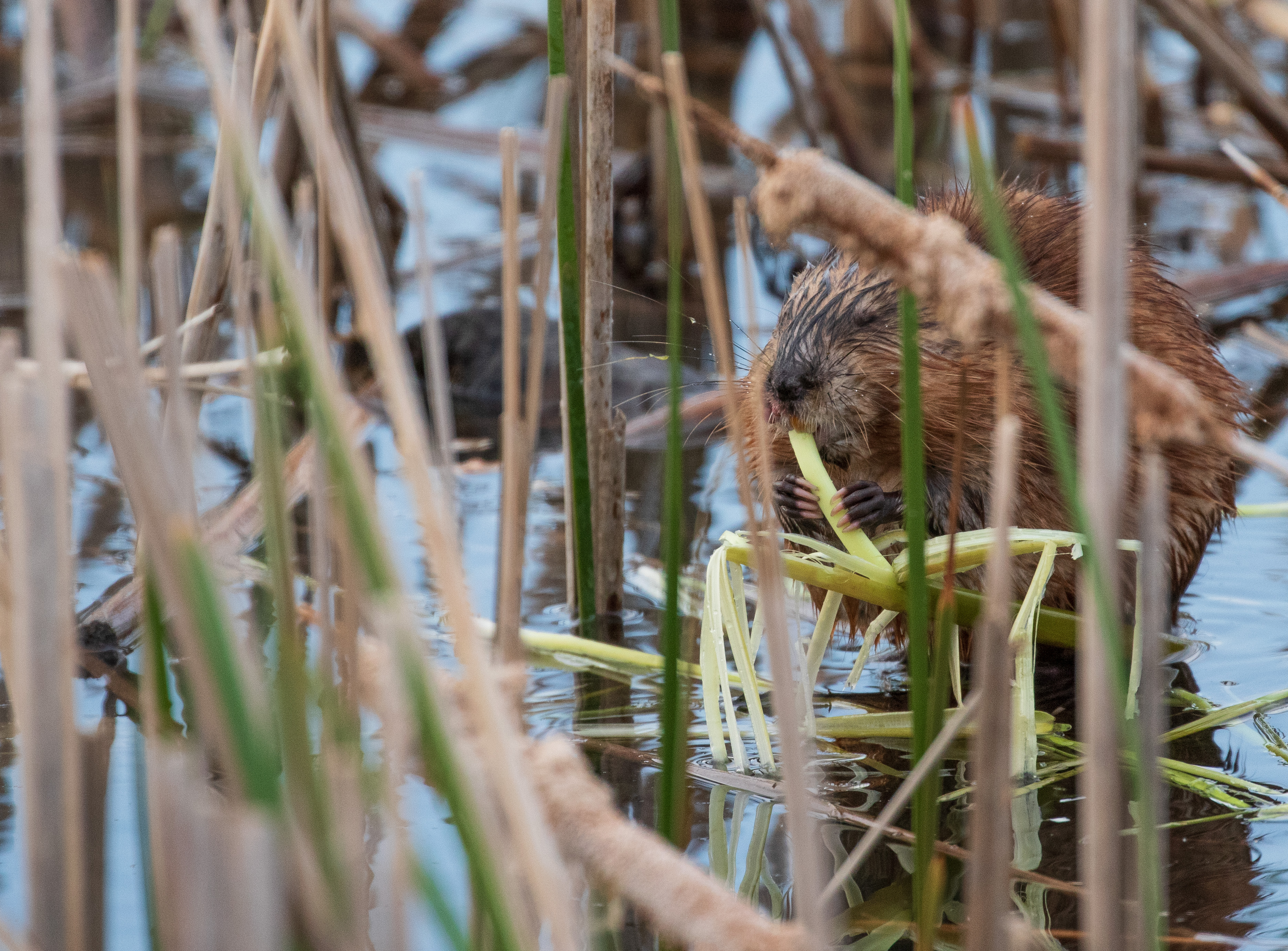 Muskrat eating in a wetland at Big Stone National Wildlife Refuge in Minnesota.