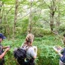 Matt Drury, Appalachian Trail Conservancy, Chris Kelly, North Carolina Wildlife Resources Commission, and Sue Cameron, U.S. Fish and Wildlife Service studying digital maps of North Carolina's Black Mountains