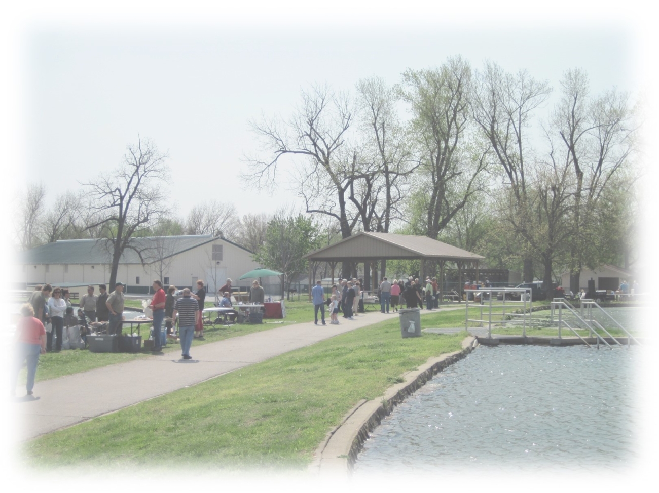 booths with exhibitors, information, free trees, food, and music line the ponds at the Neosho National Fish Hatchery