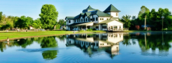 The bright greens of spring almost glow as the fish jump and make ripples on the pond.