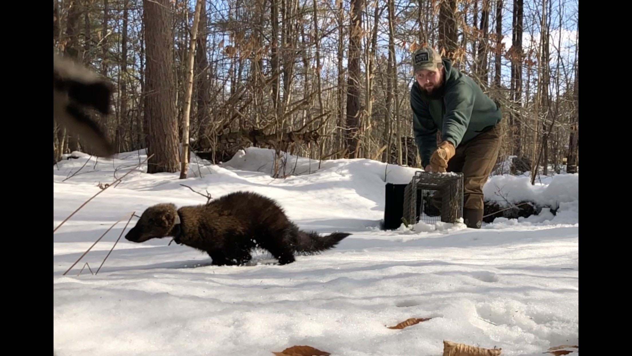 Biologist Adam Bleau releases collared fisher in New York as part of monitoring research into fisher population dynamics.