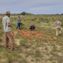 Members of the Nipomo Mesa lupine recovery team survey for the plant on cattle-grazed land in San Luis Obispo County. The orange markers indicate early signs of lupine in spring 2019.