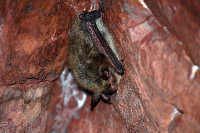 A northern long-eared bat in a cave.