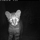 A curious young ocelot approaches a remote-action trail camera at night at Laguna Atascosa National Wildlife Refuge in Texas.