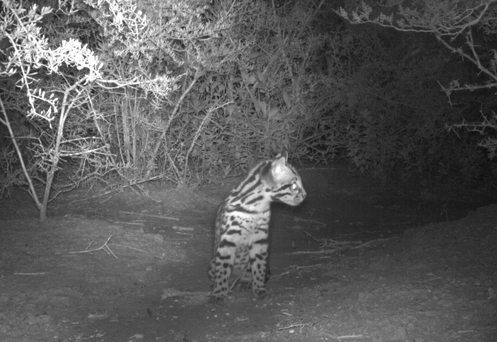 An ocelot kitten photographed with a remote camera at Laguna Atacosa National Wildlife Refuge