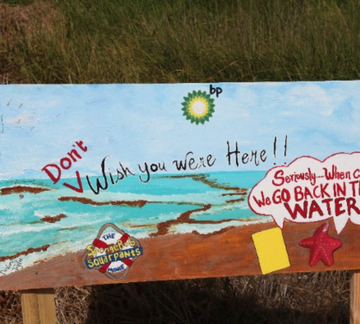 Oil spill protest sign