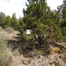 A Western juniper is marked for removal in the Oregon desert.