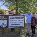 Dr. Tomáš Scholz, Eric Leis, Dr. Anindo Choudhury, and Jennifer Bailey take time out of their day for a quick photo in front of the USFWS Midwest Fisheries Center