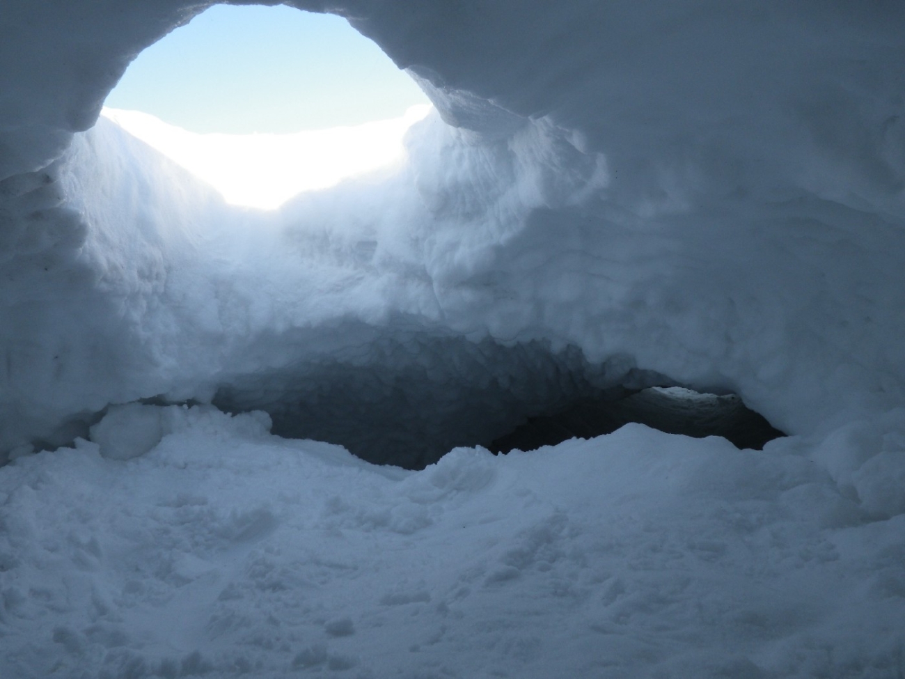The remains of a polar bear den. While black and brown bears hibernate for several months each year, polar bears den in winter only when pregnant.