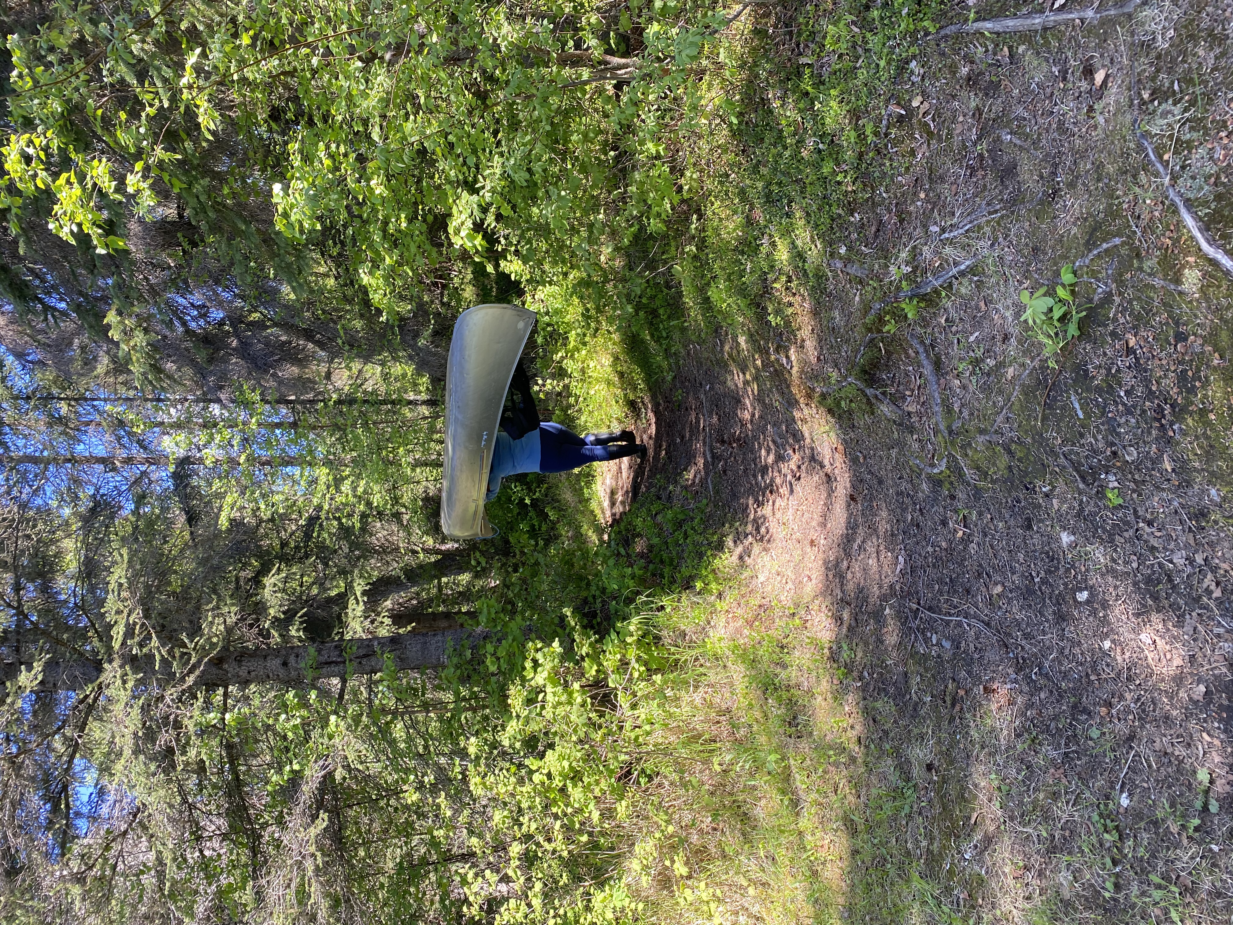 Portaging a canoe in the Swan Lake Canoe System at Kenai National Wildlife Refuge in Alaska.