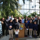 Providence Urban Wildlife Conservation Partnership partners, elected officials and students from the 'Wild Kids Club' gather to celebrate the 10th anniversary of the partnership
