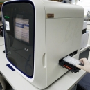 A fish health biologist loads a qPCR tray into the machine for testing. This machine can detect small quantities of pathogen DNA and is commonly used in applied research projects.
