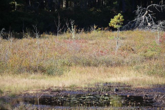 To my delight, there was a cooter basking in this wetland. Can you spot it?
