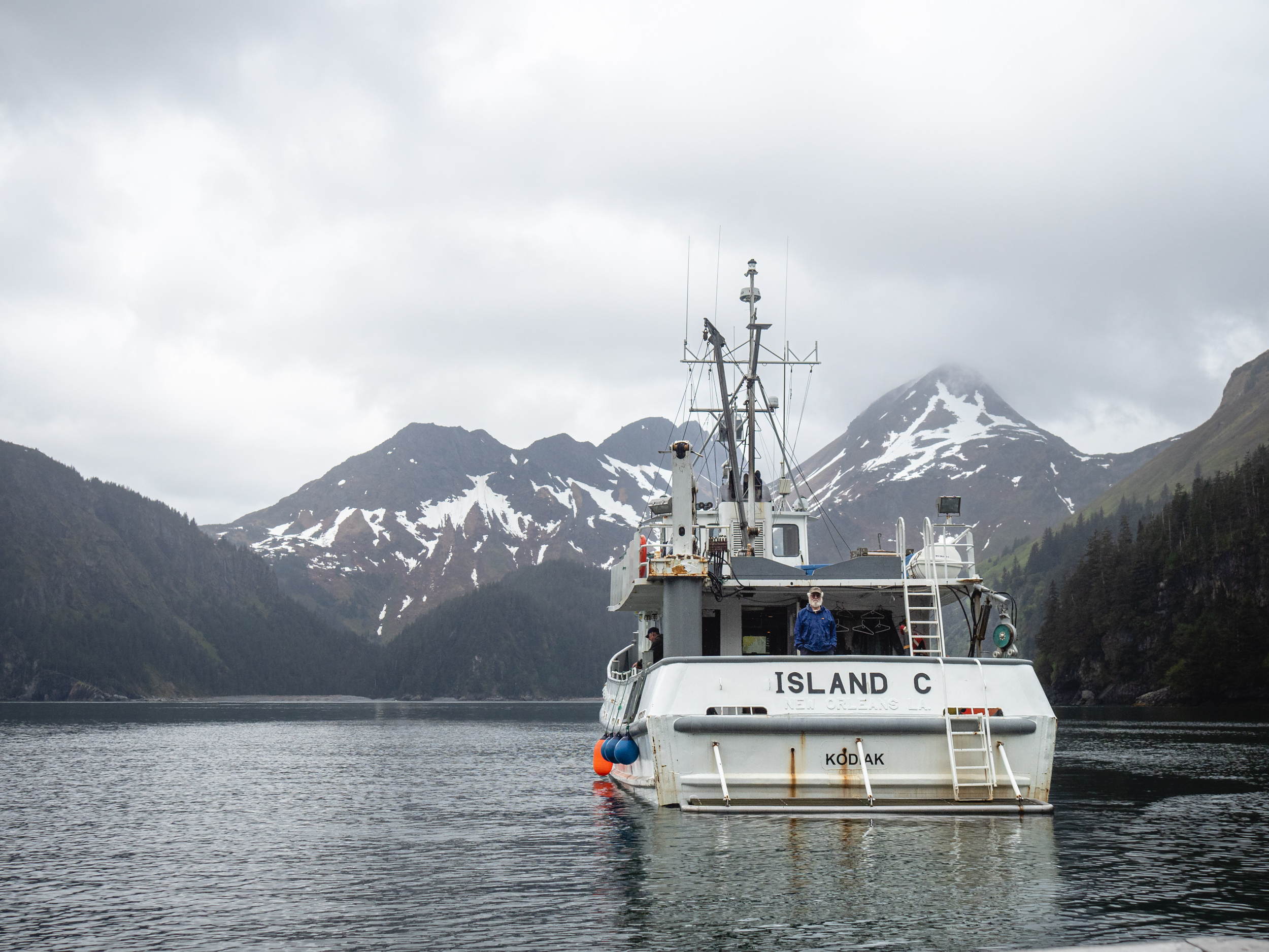 Research vessel Island C anchored in Thunder Bay, Kenai Fjords National Park