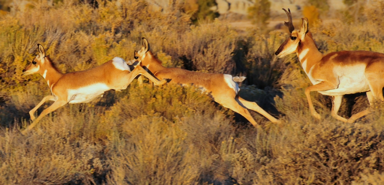 The fastest land mammal in North America, pronghorn can sprint as fast as 60 mph and can sustain a speed of 30 mph for miles.