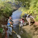 Mid-Columbia Fish and Wildlife Conservation Office staff defish the work area using nets and a backpack electroshocker before dewatering a channel for restoration.
