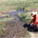 Fisheries Biologist Pete Diaz assesses a pool for invertebrate occupancy and activity in Fort Stockton, Texas, at Diamond Y Springs Preserve by Amelia Hunter/USFWS.