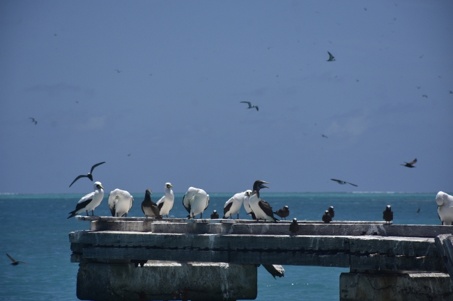 Seabirds on a pier at Johnston Atoll Refuge