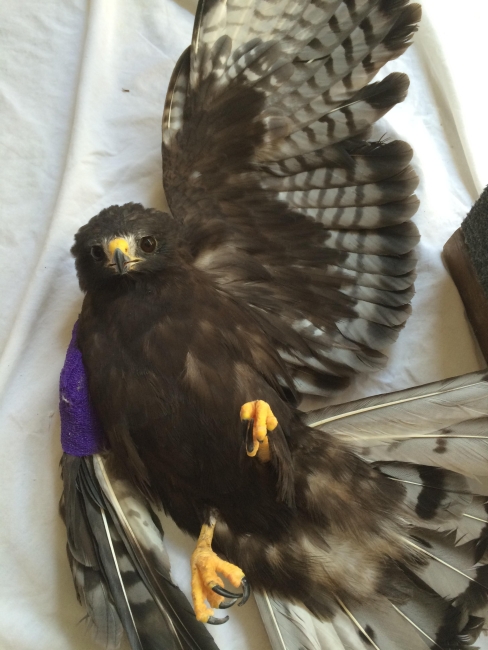 This short-tailed hawk was caught in a barbed-wire fence. Due to the extent of the injuries, he could not be released, so he became a wonderful education ambassador at the Audubon Center for Birds of Prey. For more than 12 years he helped staff teach many people about his species and how critical they are as part of our ecosystem. Courtesy of Samantha Little, Audubon Center for Birds of Prey.