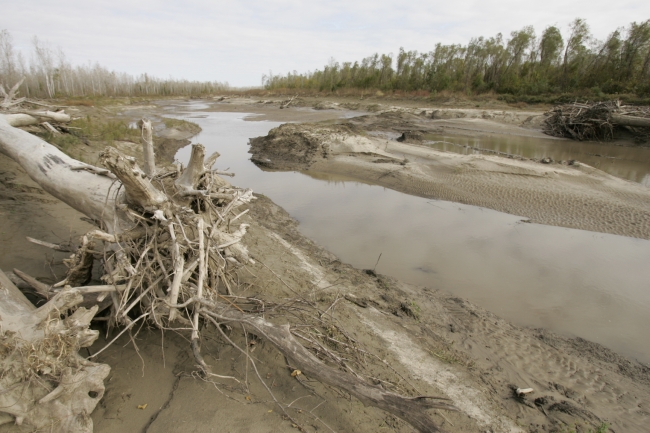 Sediment and debris in Missouri River side channel.