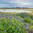 Blooming lupines and inundated vernal pools, signs of spring in April 2019 at the North Campus Open Space. Photo courtesy of UCSB