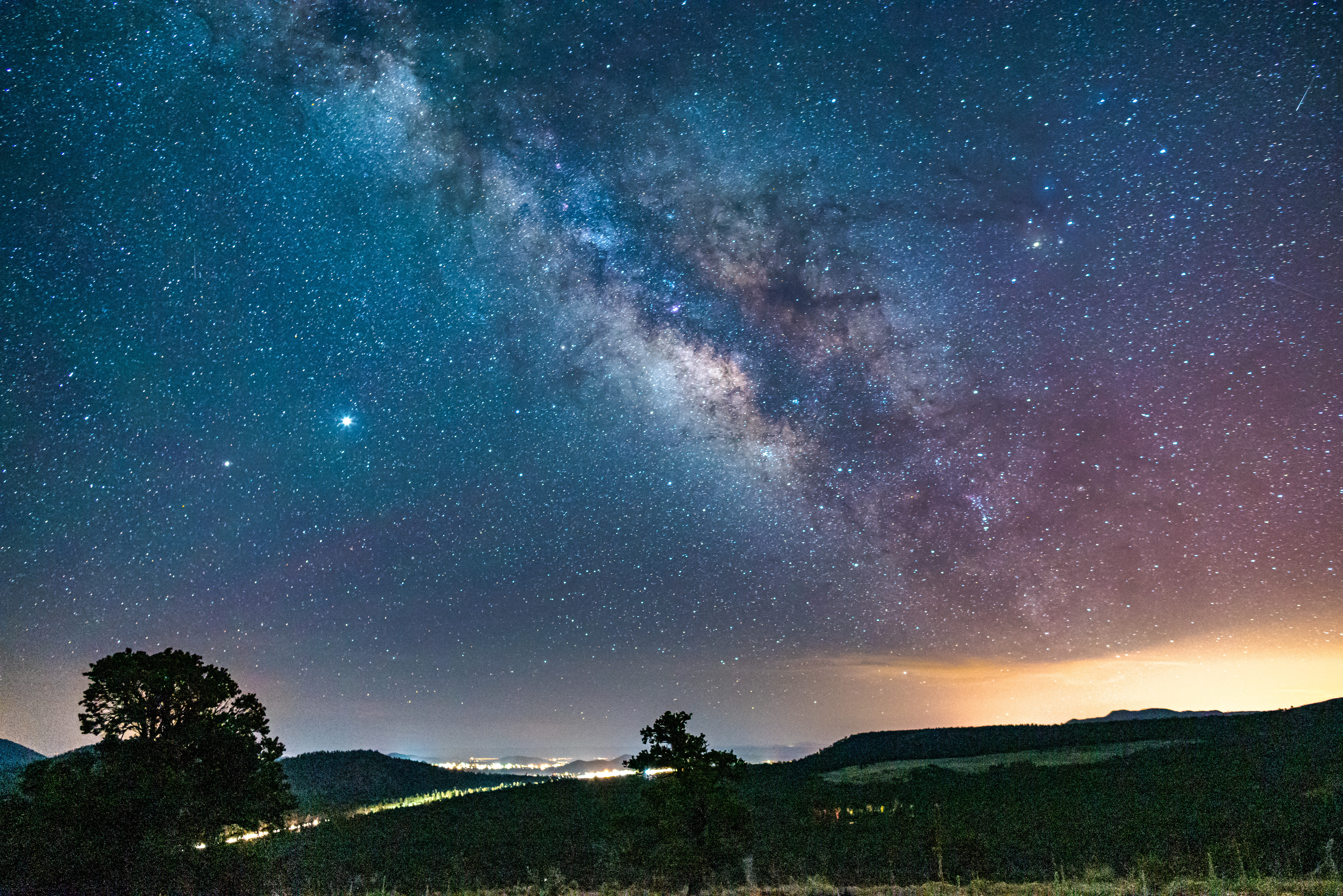 Sky glow over Flagstaff, Arizona, as seen from Coconino National Forest