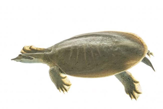 Smooth softshells are strictly riverine species and are associated with large rivers, sandy bottoms, and sanbars. The smooth softshell turtle is endemic to North America.