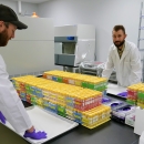 Staff at Whitney Genetics Lab getting ready to sample hundreds of eDNA samples