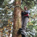 Sue Cameron downloads temperature and humidity data for an automated data logger in North Carolina's Black Mountains. The logger collects the data several times daily, which Cameron downloads twice a year.