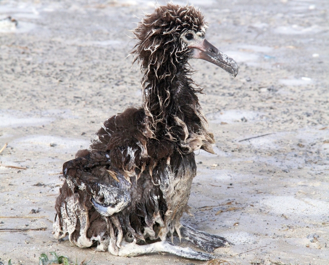 A surviving Laysan albatross after a tsunami on Midway Atoll