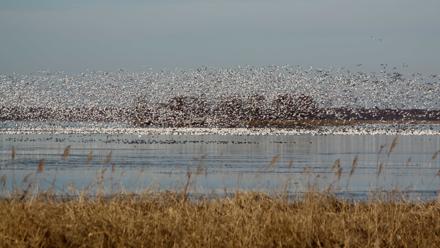Hundreds of swans take flight at Lake Mattamuskeet at Mattamuskeet National Wildlife Refuge in North Carolina.
