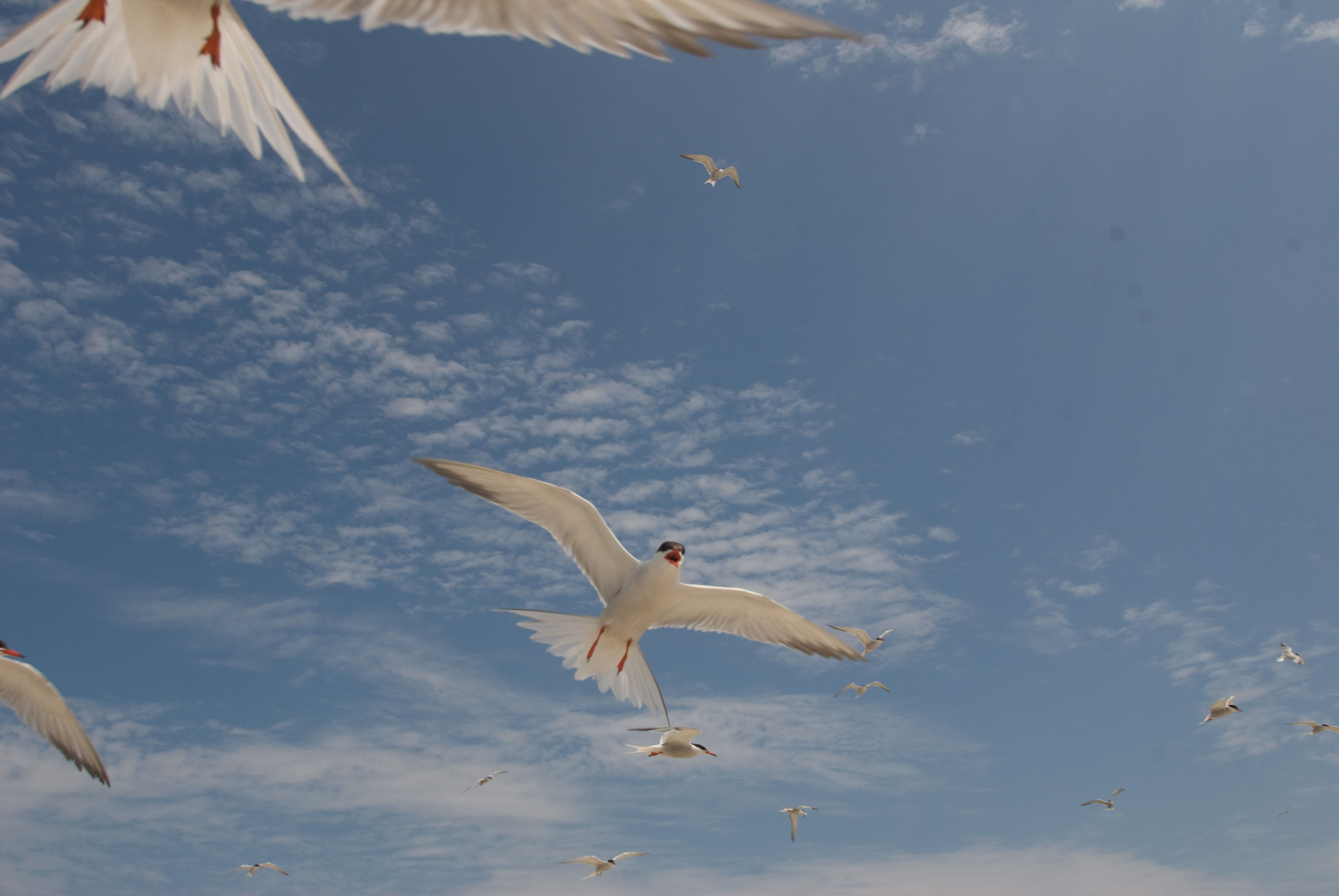 Terns in flight at Monomoy National Wildlife Refuge in Massachusetts.