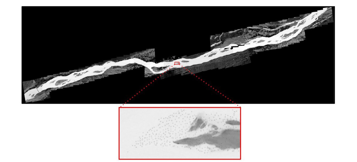 Sandhill cranes located by thermal imagery (right) near the Platte River, Nebraska (above).