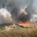 Thick, dark smoke rises a burning tule clump during a prescribed fire at Delevan National Wildlife Refuge in northern California.