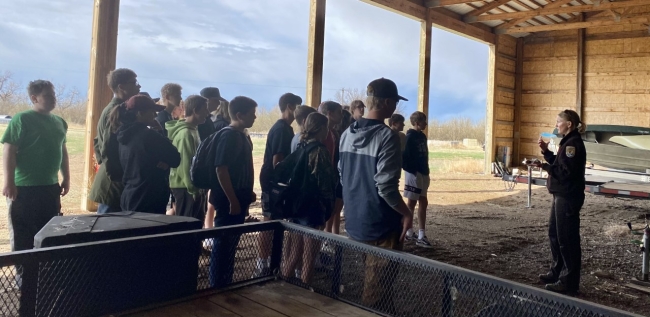 Area 8th graders listened to Biologist Jessica Larsen as she explained how they can see what the owls are eating.