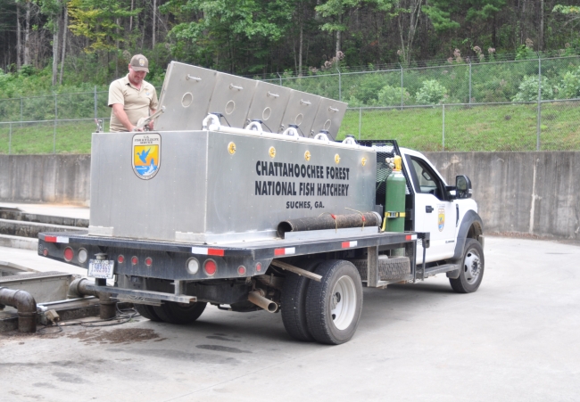 Trout distribution truck at Chattahoochee Forest National Fish Hatchery