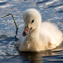 A trumpeter swan cygnet at Tamarac National Wildlife Refuge in Minnesota. Young trumpeter swans are called cygnets.