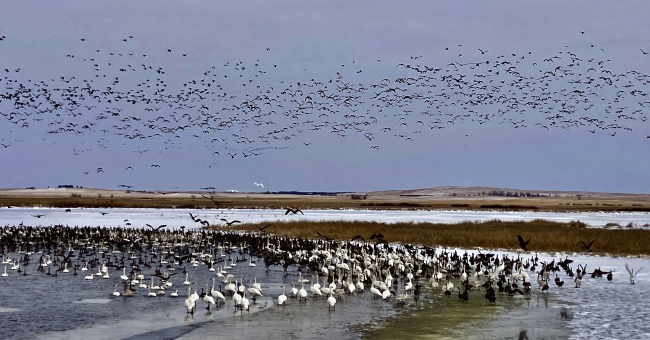 Trumpeter Swans and Canada geese at Lacreek NWR