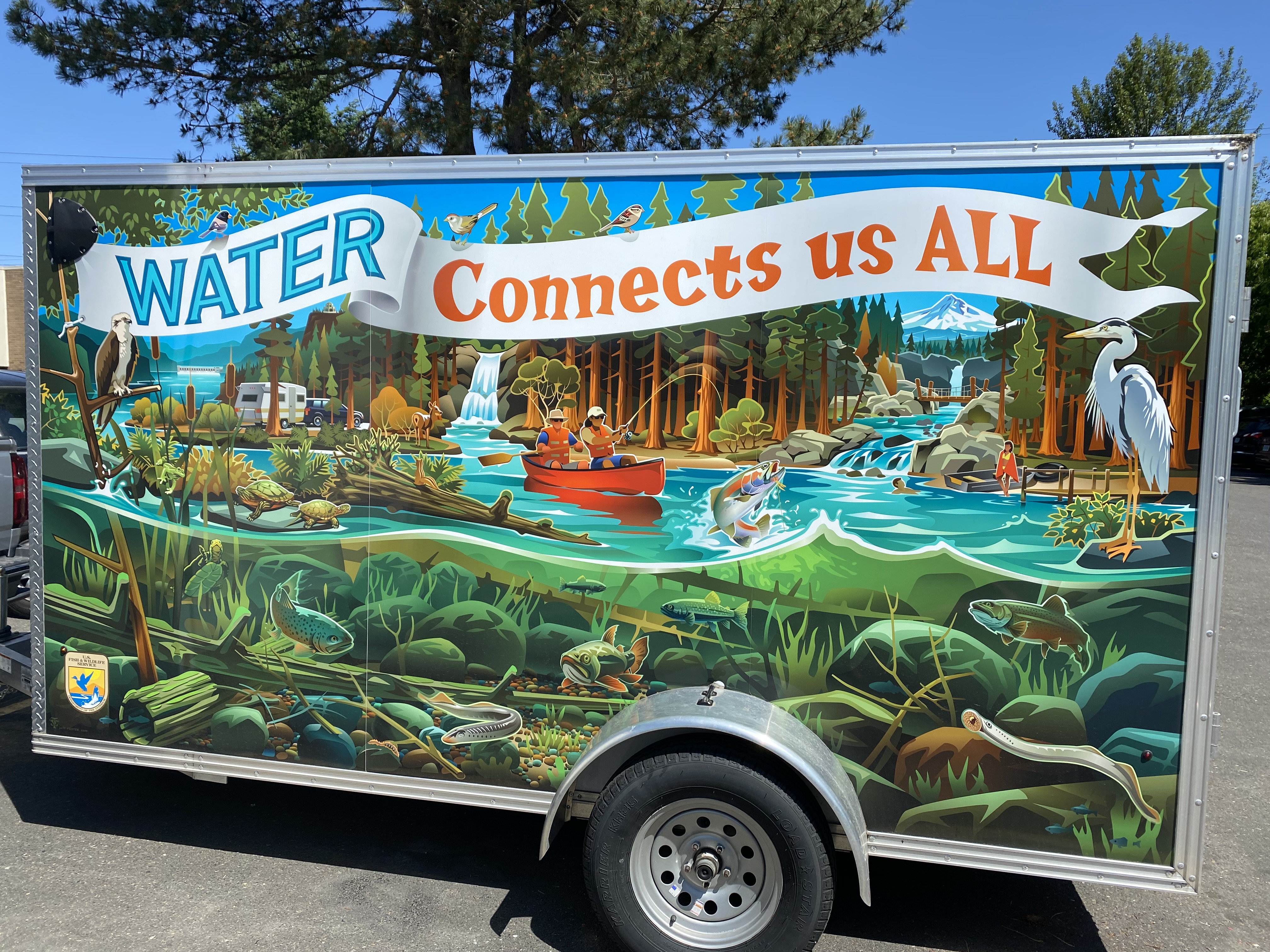 The Service’s “Water Connects Us All” trailer is stocked with fishing rods and a variety of fun educational activities used for public engagement and fishing events.