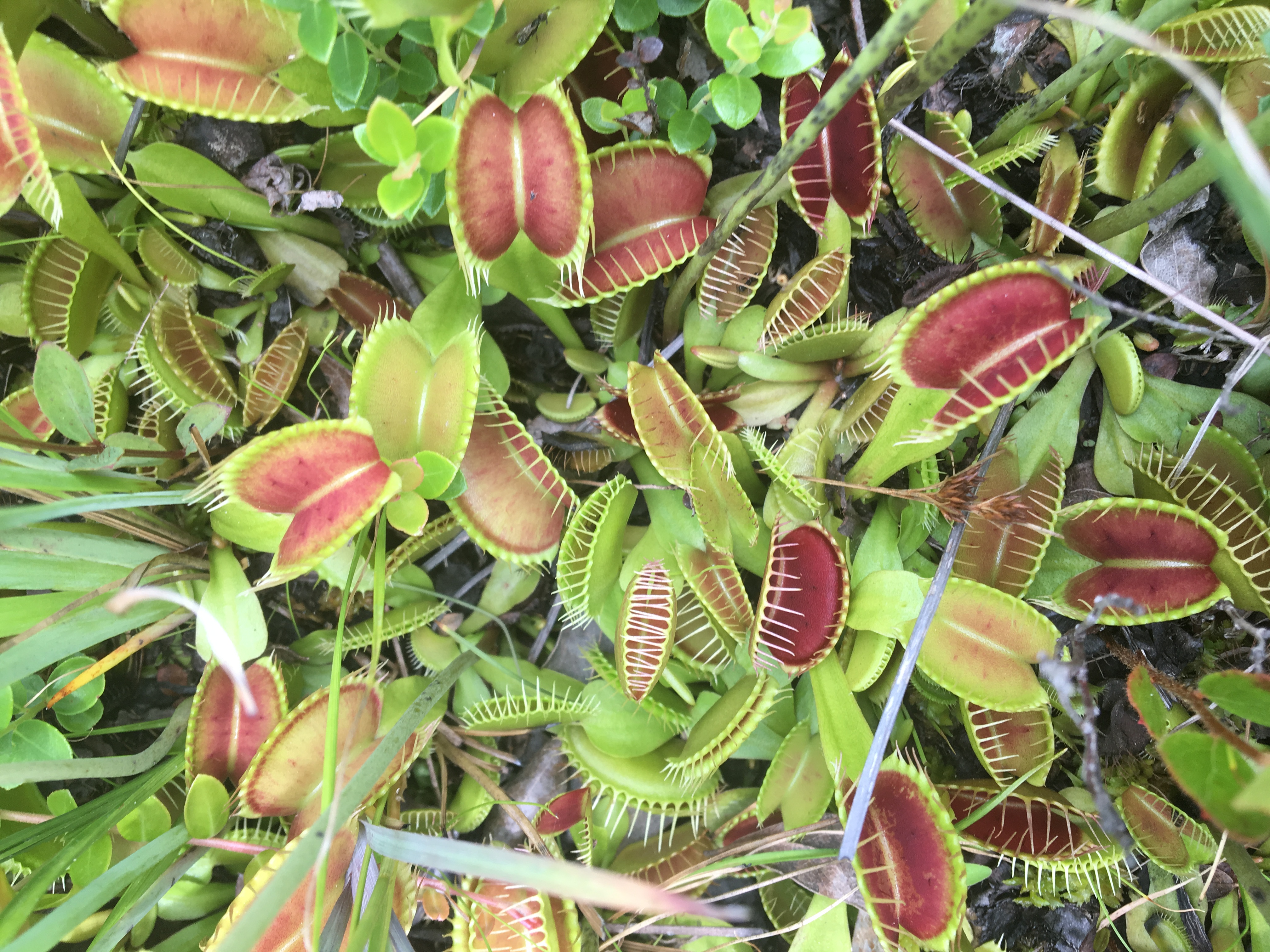 A cluster of Venus flytrap plants growing close to the ground in eastern NC. Photo by Dale Suiter, June 13, 2019.