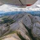 A dramatic view of a mountain range from a plane flying over Arctic National Wildlife Refuge