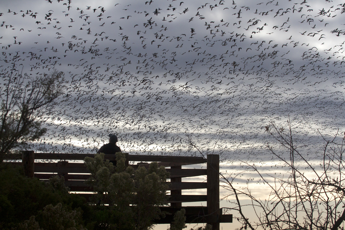 Visitor enjoying the wildlife observation deck at San Joaquin River National Wildlife Refuge in California. © Rick Lewis