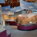 Visitor exhibits on prairie grass and explorers at Neal Smith National Wildlife Refuge in Iowa.