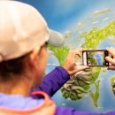 A visitor photographs a map display at Izembek National Wildlife Refuge Alaska.