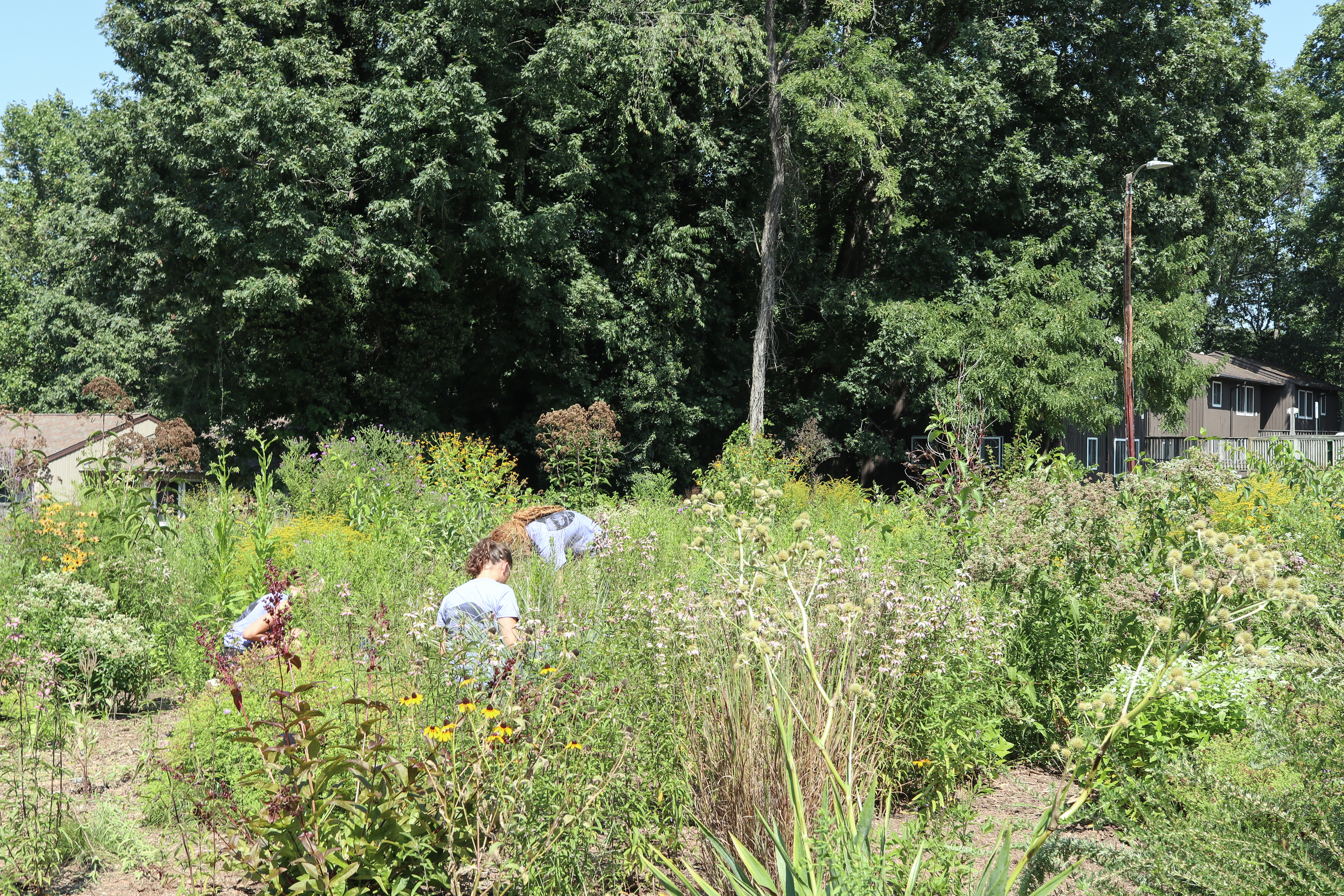 Warren Wilson College students volunteer at a pollinator garden