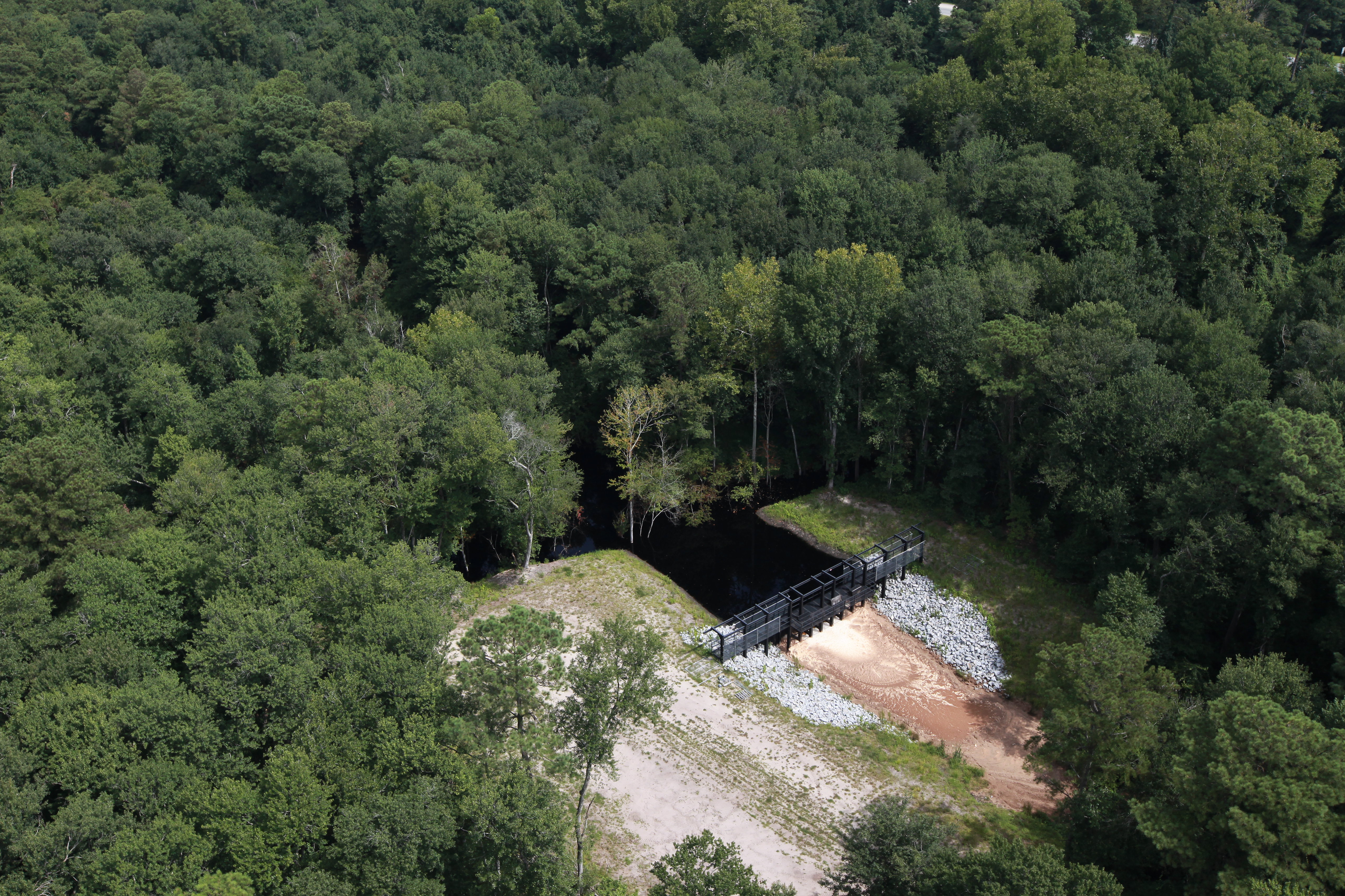 Water control structures like this one installed at Great Dismal Swamp National Wildlife Refuge in Virginia and North Carolina plug old man-made ditches and allow the swamp to hold water once again. The structures were installed to "rewet" the peatland swamp after loggers and others drained it starting in the 18th century.