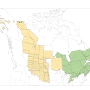 Strata and transects of the Waterfowl Breeding Population and Habitat Survey (yellow = traditional survey area, green = eastern survey